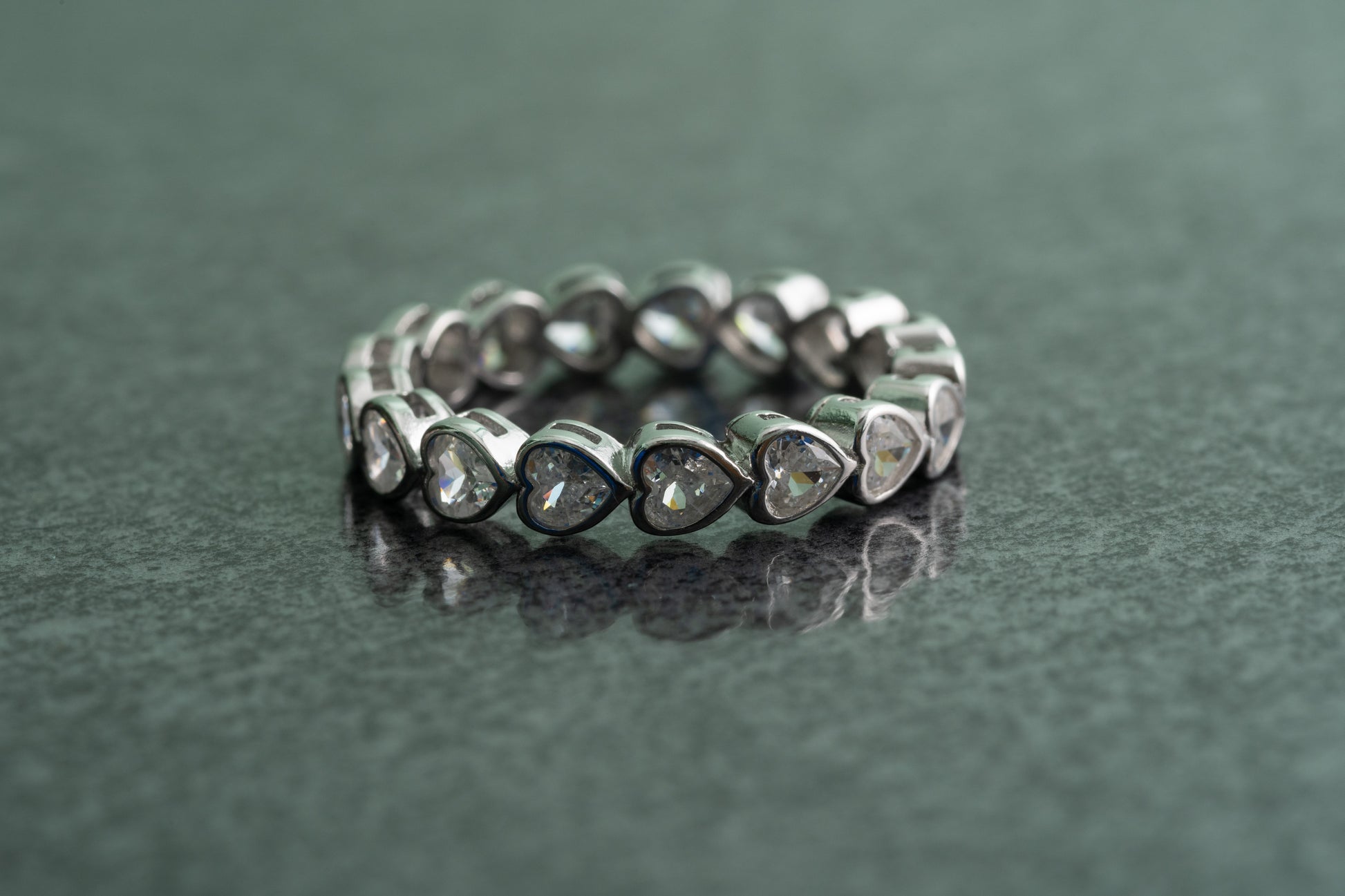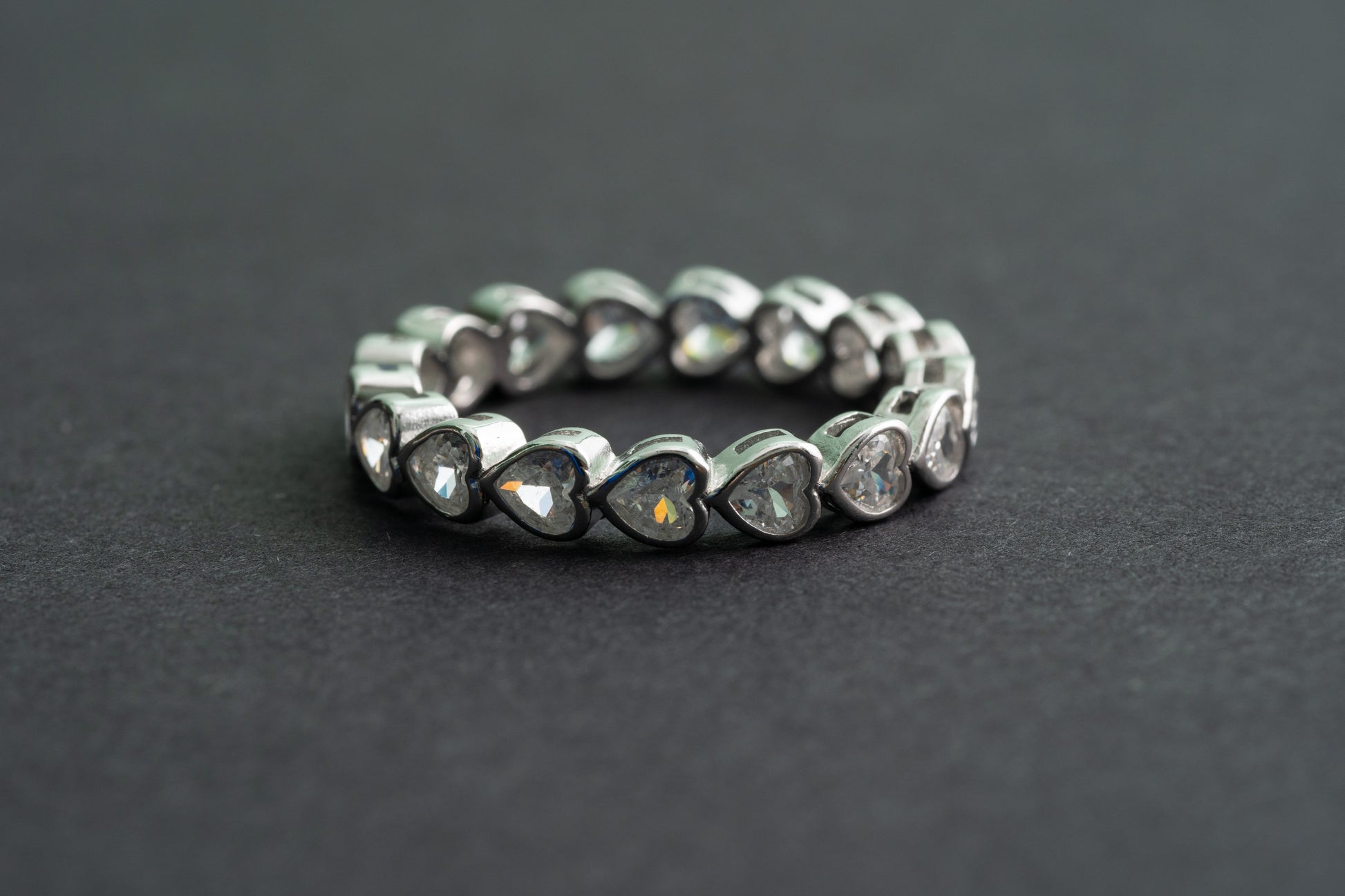 El Endless Hearts Ring está compuesto por una fila continua de corazones con zirconias de alto brillo, montados sobre una base de plata esterlina 925 con baño en oro blanco. Cada corazón representa un momento, una historia, una conexión.